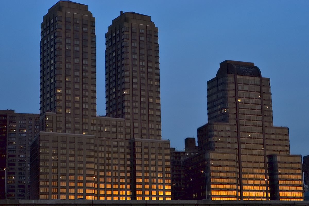 A boat fom New York, a plane from Newark and the railway station in New Jersey. Taken from the jetty at the World Financial Center.