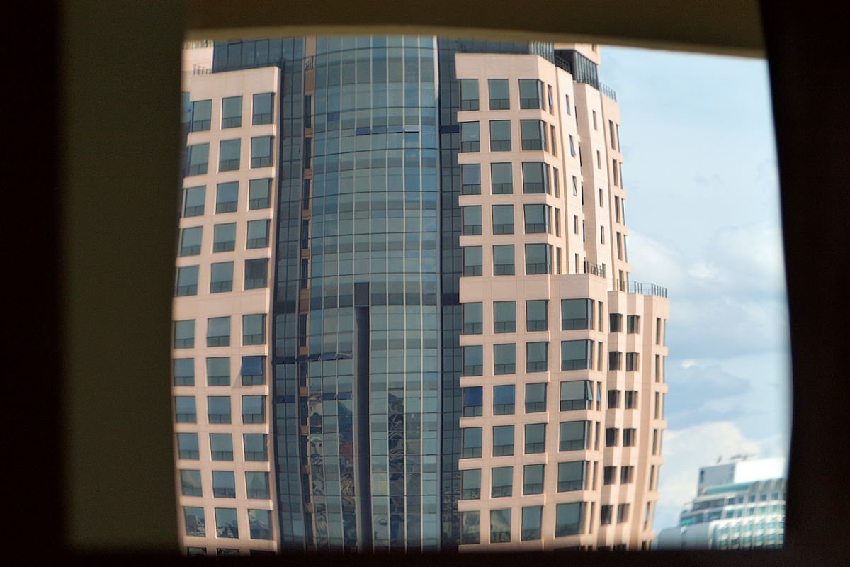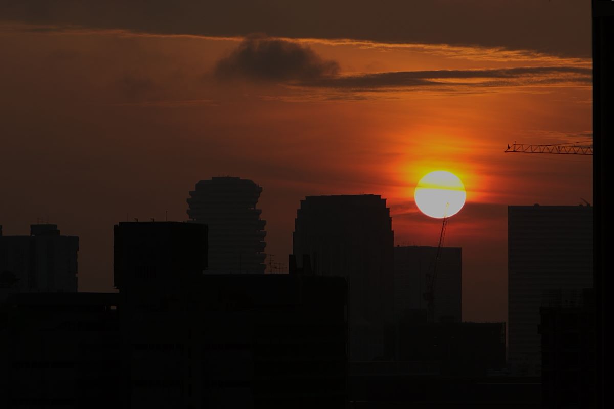 Sunset from the office. (Self timer handheld manual focus behind window)