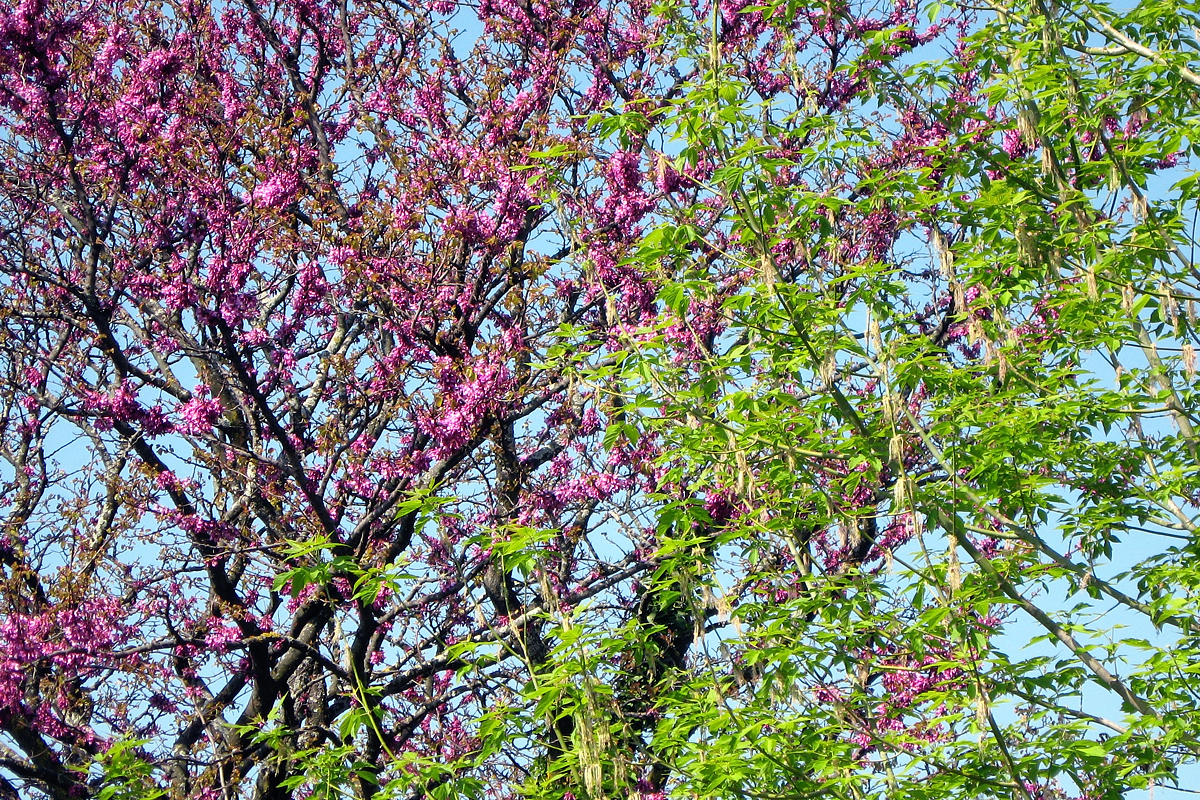 Blossoming tree in Riverside Park. New York - Upper west side. GWB bridge in the background.