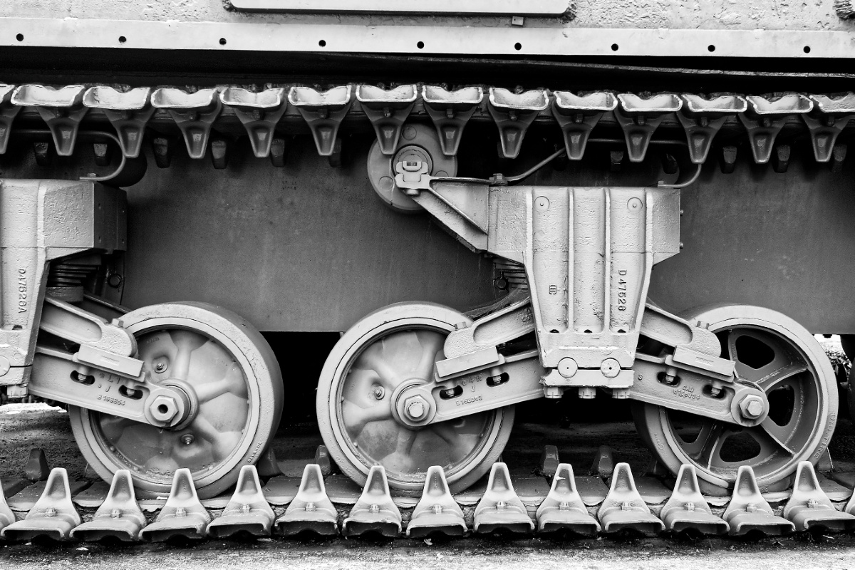 Detail of a Sherman A4 tank located in the Musee memorial de la bataille de Normandie in Bayeux, France