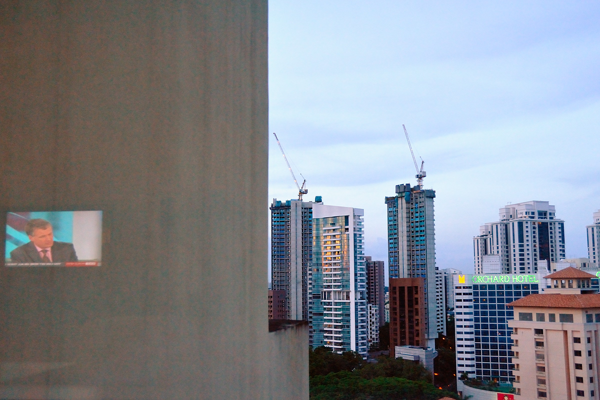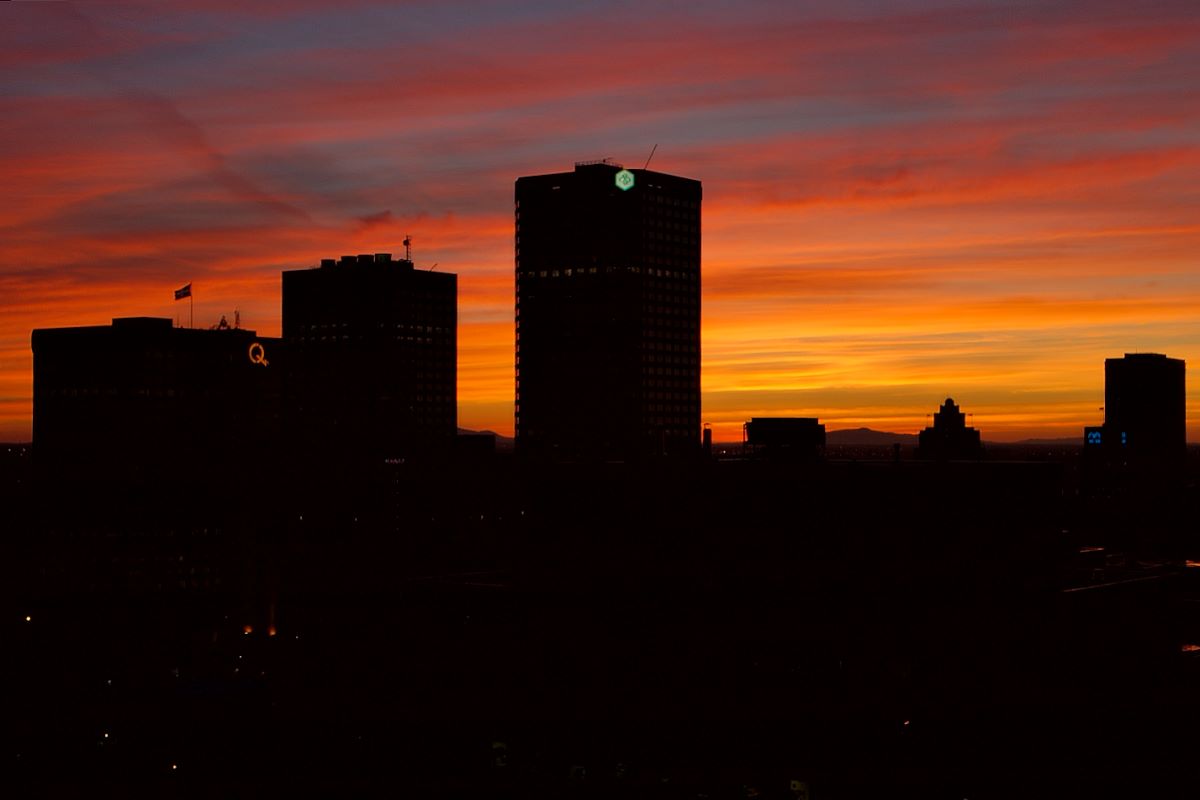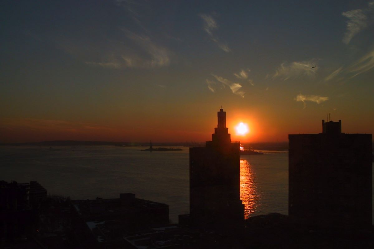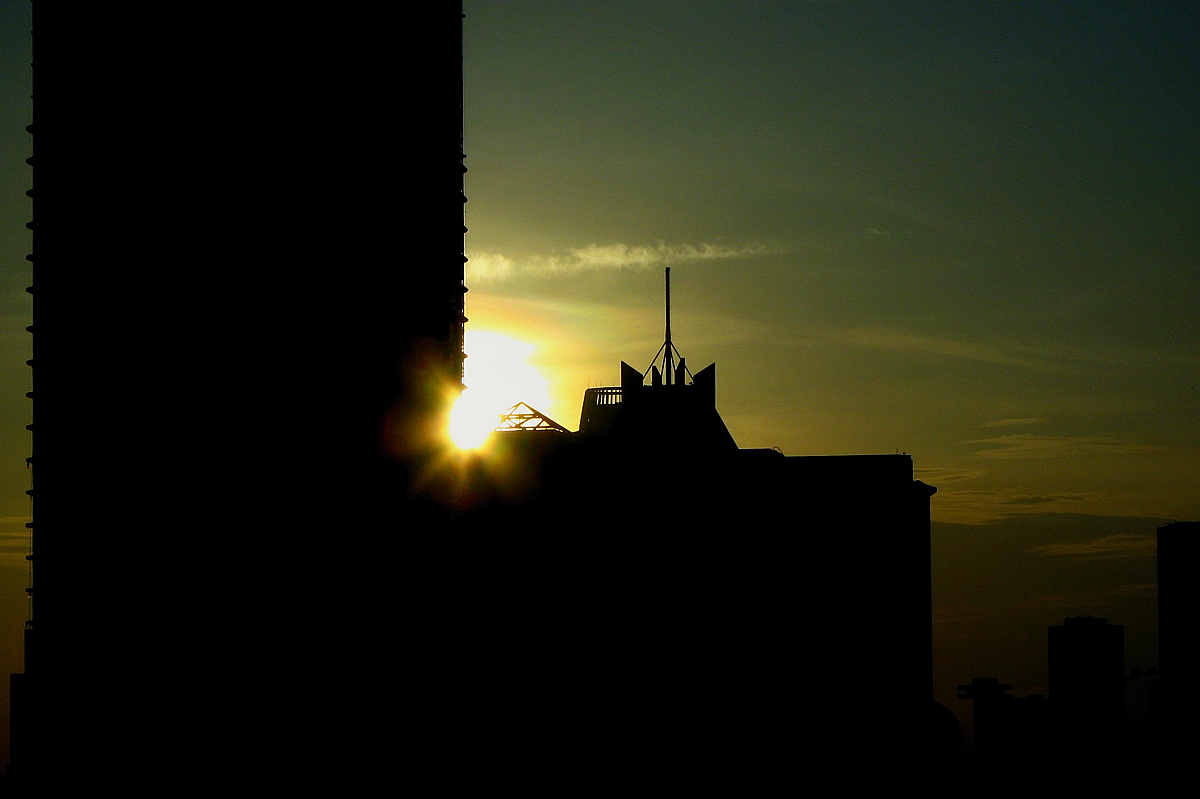 Sunset from the office. (Self timer handheld manual focus behind window)