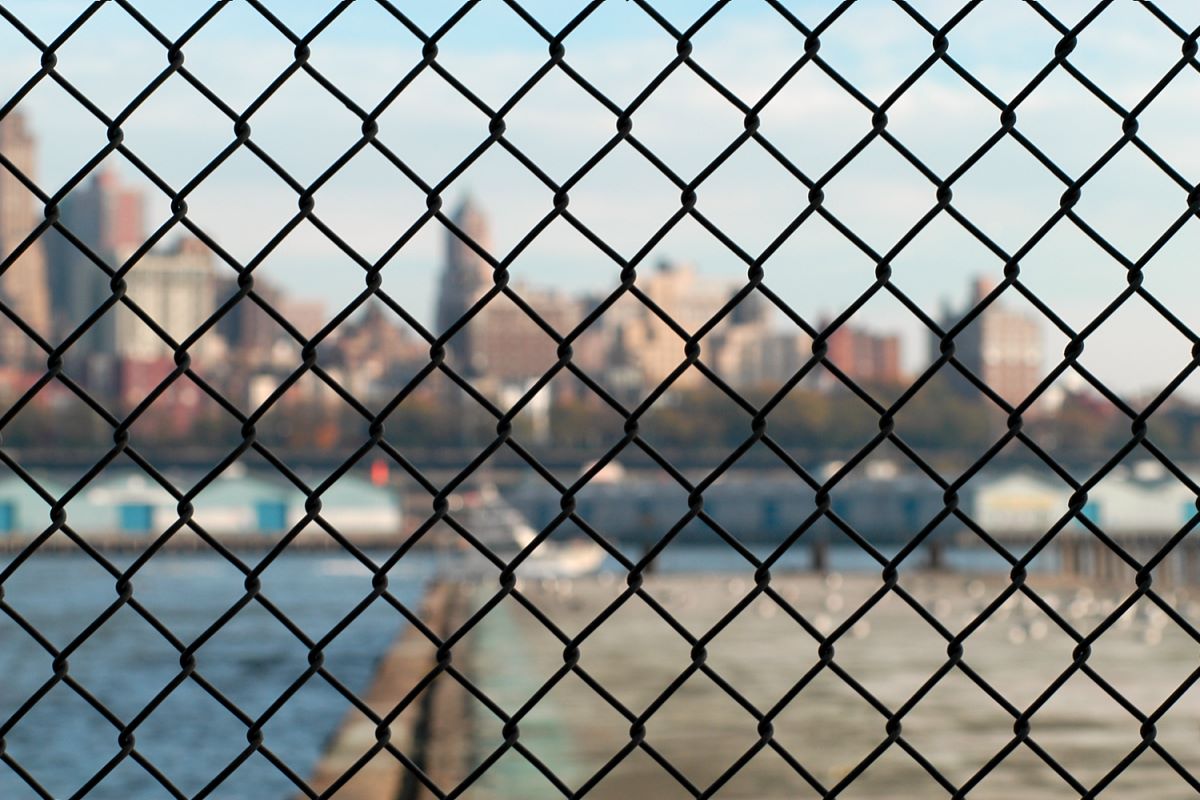 Brooklyn thru a metal fence. Taken downtown Manhattan near Pier 17.