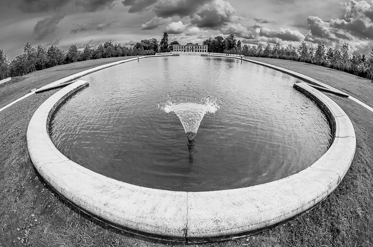 Fountain in the Rentilly park. 8mm fisheye at f/10.